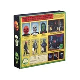 Each is dressed for a night of fun and each comes with two interchangeable heads: one in the distinctive Silver Shamrock mask and one displaying the effects of the triggered mask. These articulated figures stand approximately 6″ tall and also come with trick or treat bags and a TV set accessory with lenticular effect.