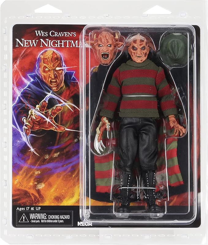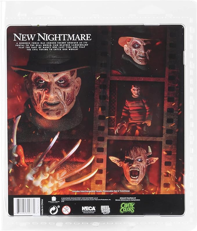 This time, staying awake won't save you. Introducing an all-new Freddy Krueger action figure from Wes Craven's New Nightmare! The seventh film in the Nightmare on Elm Street franchise took the iconic character in a more menacing direction - closer to Craven's original intentions for Freddy. This 7" scale figure features a completely new and improved sculpt with over 25 points of articulation. It comes with an alternate head and removable hat.