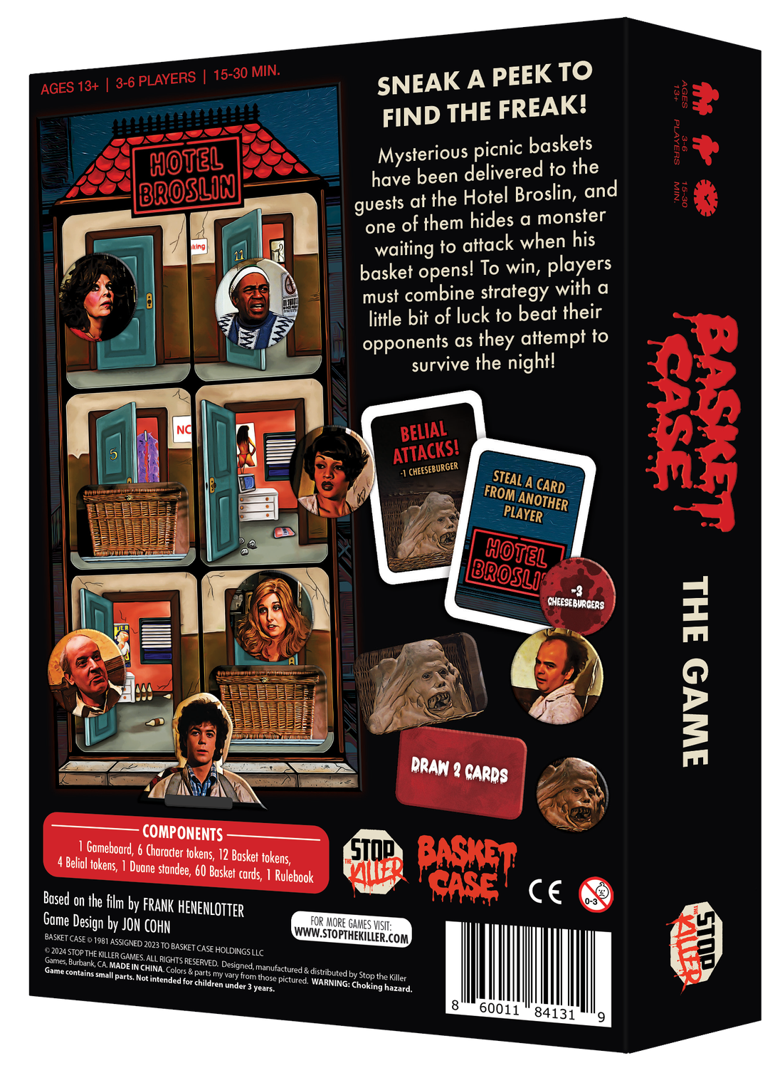 Mysterious picnic baskets have been delivered to the guests at the Hotel Broslin, and of them hides a monster waiting to attack when is basket opens! To win, players must combine strategy with a little bit of luck to beat their opponents as they attempt to survive the night!