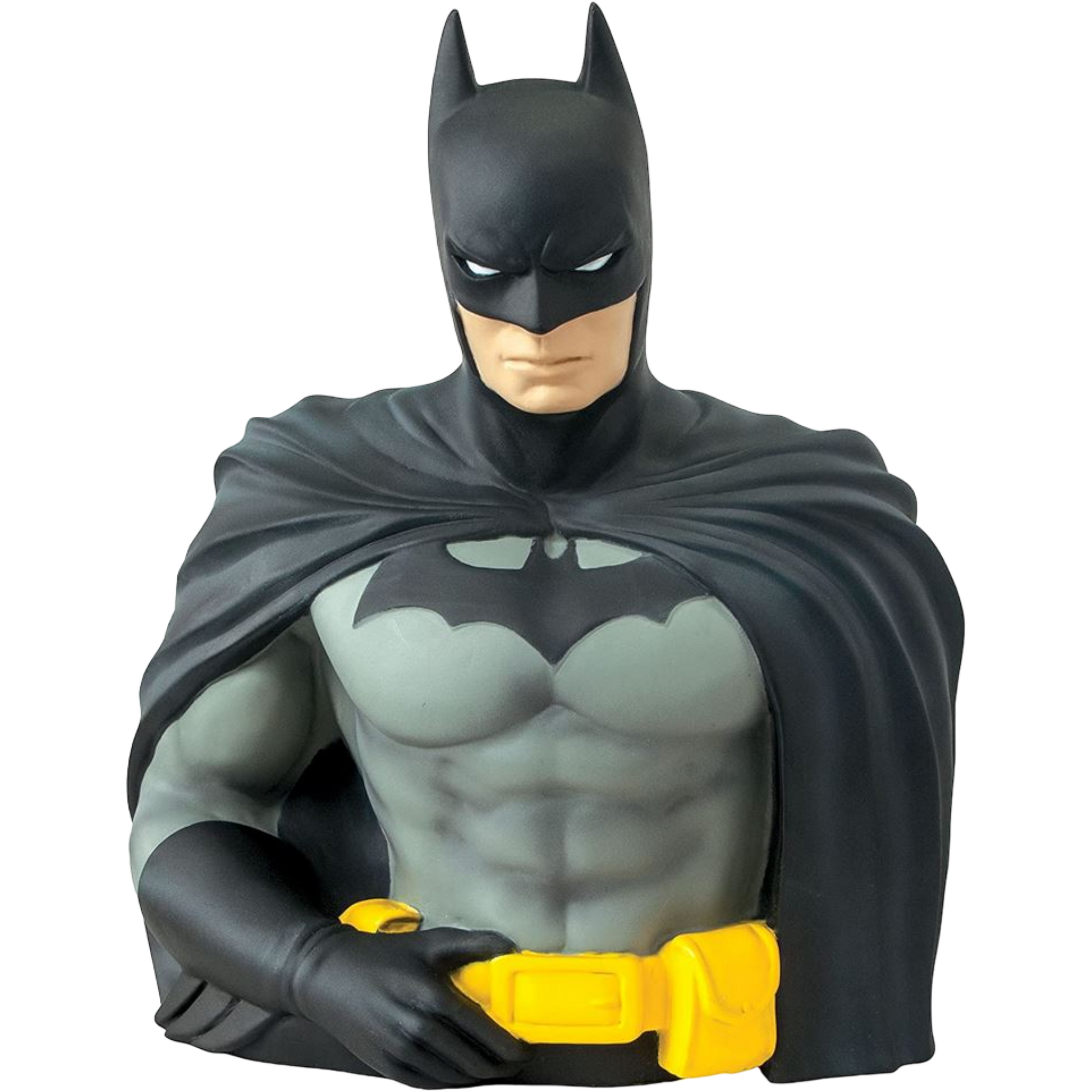 Batman Bust Figural Piggy Bank: a stylish blend of art and savings. This charming collectible adds personality to your savings routine, making it a timeless and delightful addition to your home or office