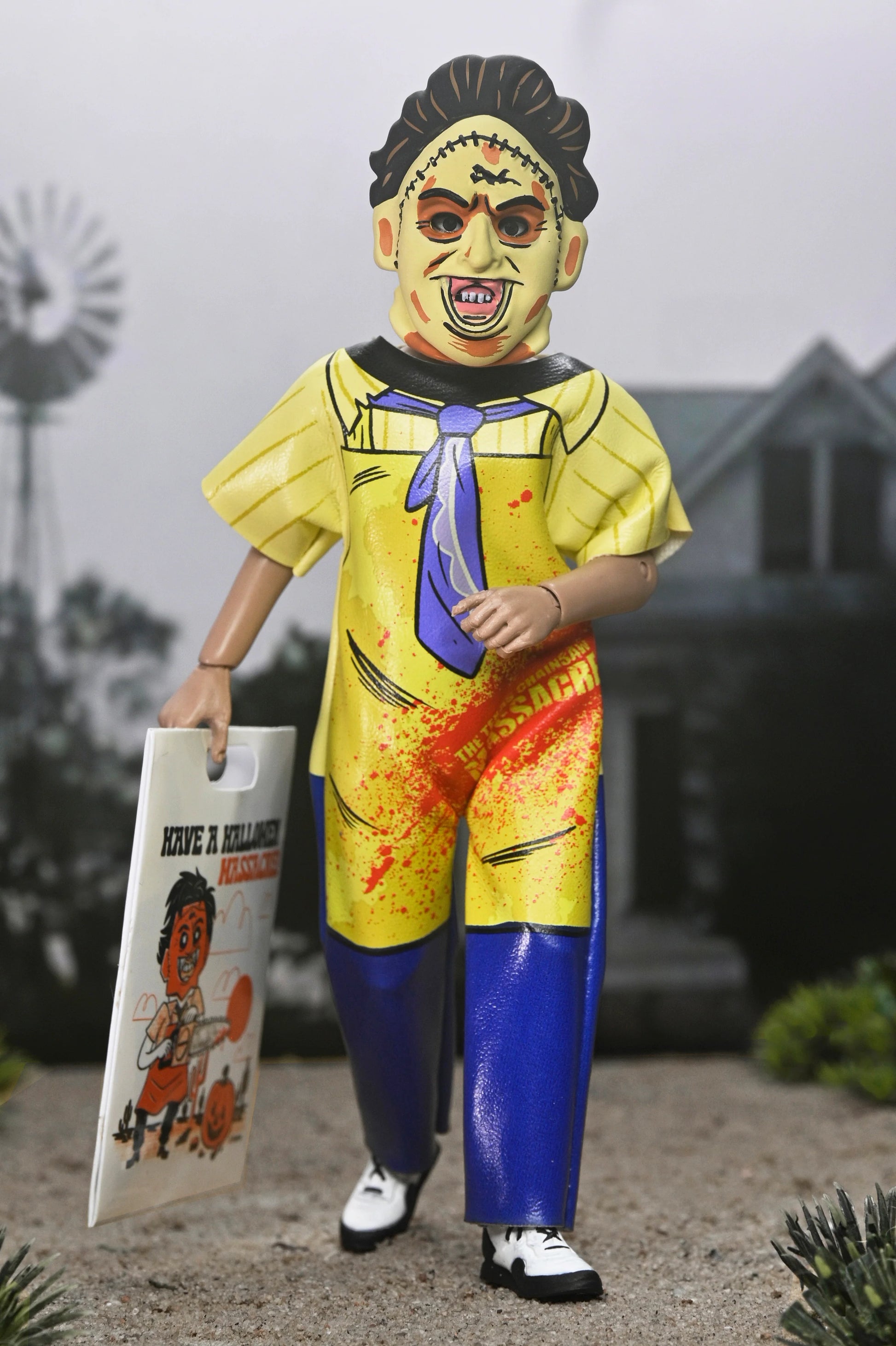 The Ben Cooper Costume Kids Collection is back with Series 9, bringing a fresh batch of spooky trick-or-treaters to your shelf! Based on the licensed kids’ costumes from one of the largest Halloween costume manufacturers from the 1950s–‘80s, these fully poseable 6-inch figures perfectly capture the vintage charm of the looks from that era. This wave features NECA’s original designs in the style of Ben Cooper costumes as if they were produced today, reimagining the legendary horror villains Leatherface (Texas Chainsaw Massacre), Michael Myers (Halloween 2), Billy the Puppet (SAW), Pennywise (2017’s IT), and Art the Clown (Terrifier). Wearing a mask and soft goods clothing replicating the vinyl look of classic costumes, each frightful figure comes complete with a movie-specific trick-or-treat bag or pumpkin bucket accessory. Every figure is sold separately and packaged in a numbered, retro-style window box that pays homage to the classic costume packaging.