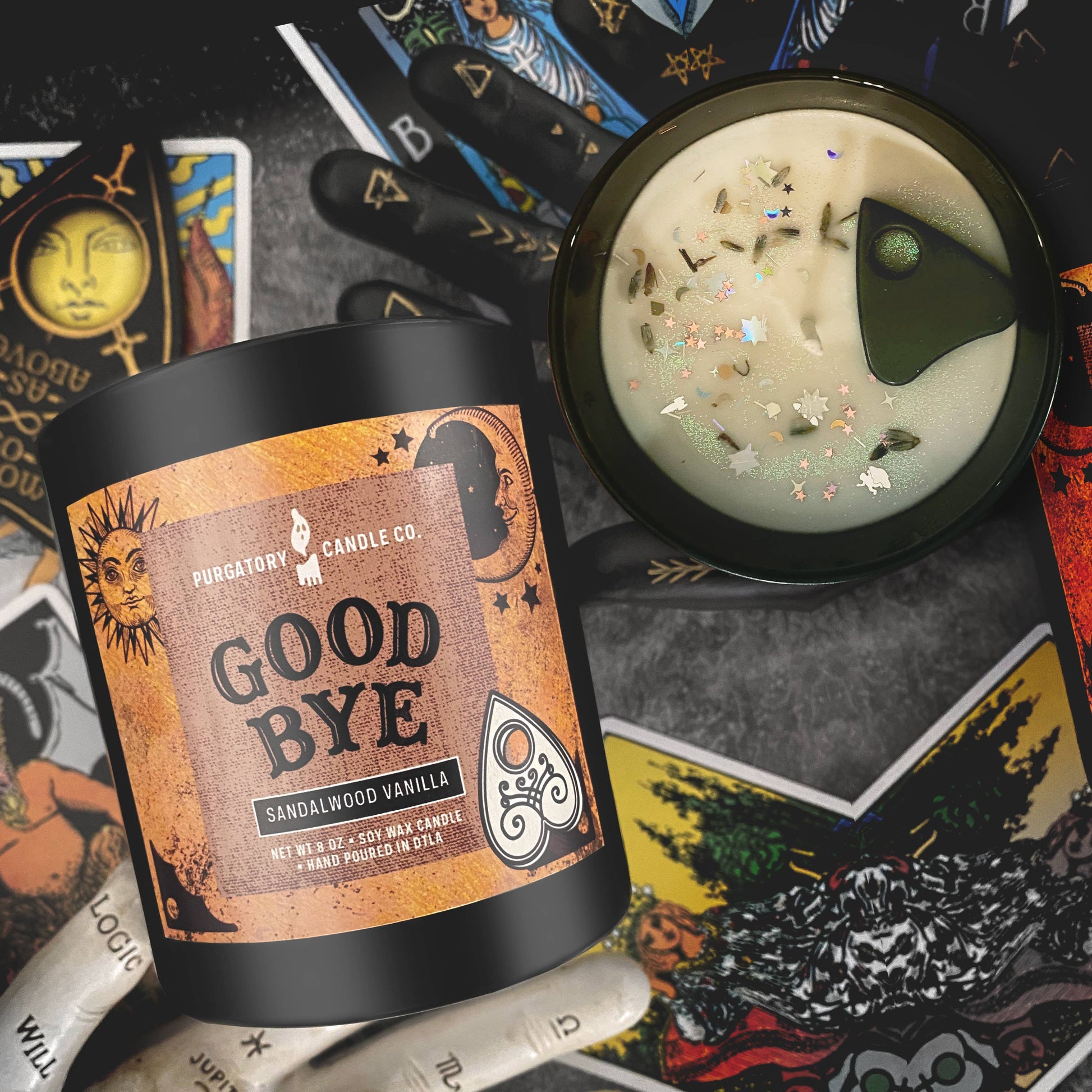This fragrance will raise your spirits, but don’t forget to say GOODBYE when you put it out. A light and aromatic scent that is not too overwhelming and inspired by spirit boards everywhere. A MUST have for your séance and for your home. 8oz candle includes a wax planchette decoration, that will melt along with your candle.