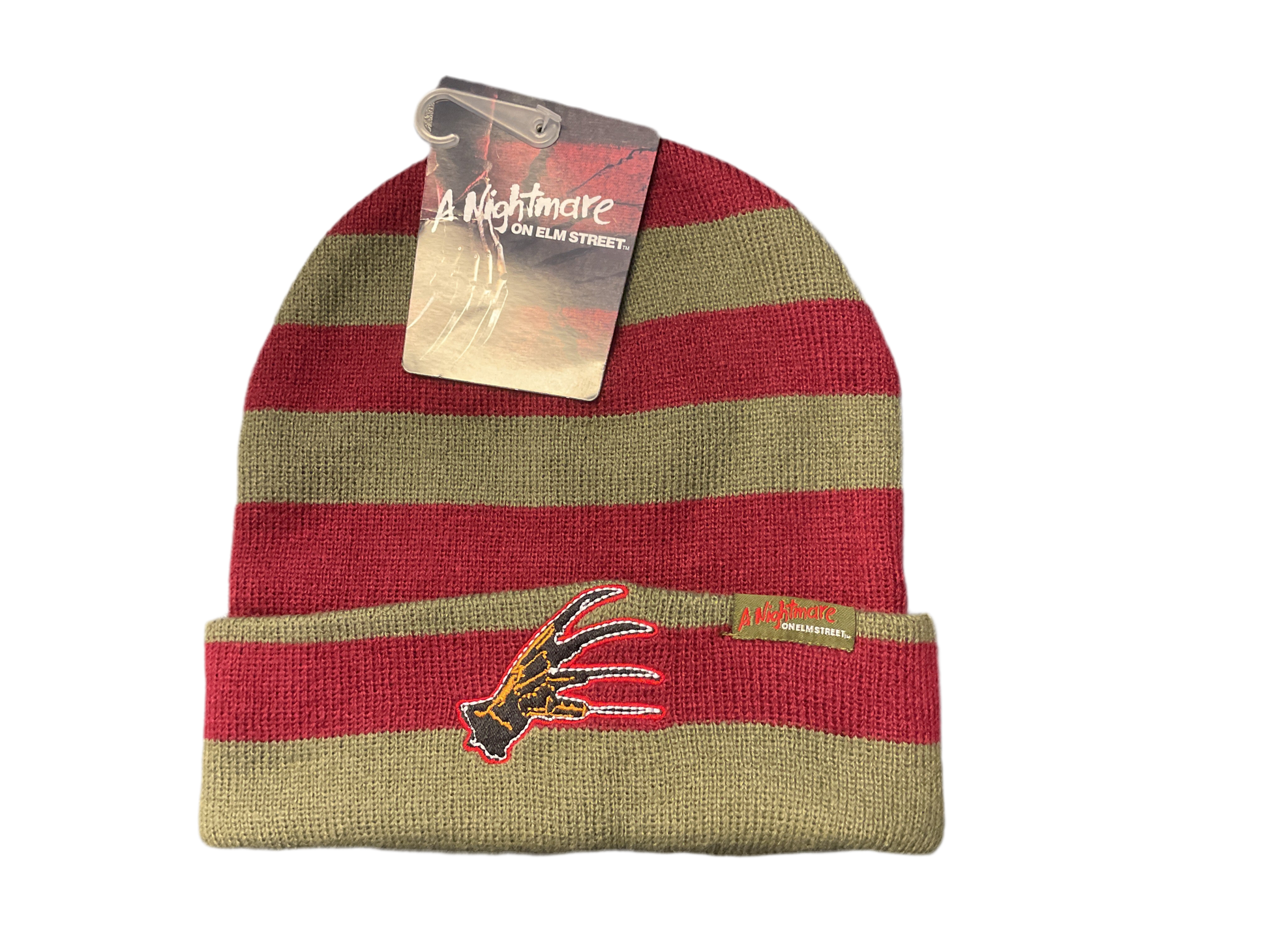 This Nightmare on Elm Street's Striped Woven Beanie is embroidered with Freddy's Glove & knit with the same iconic color combination as Freddy's favorite sweater.