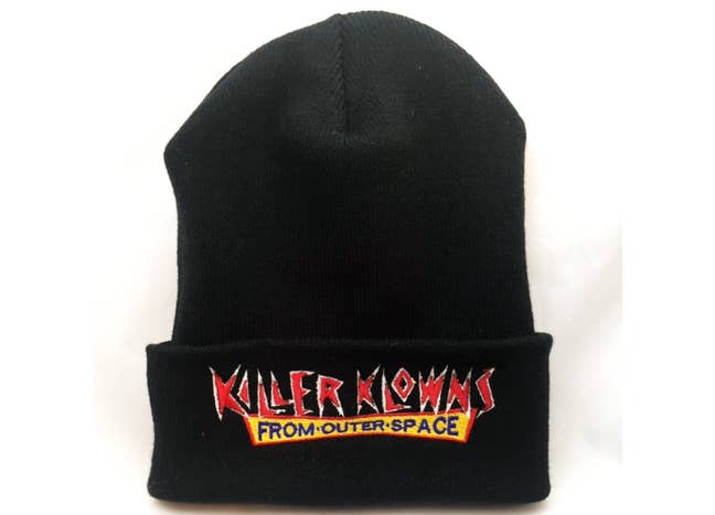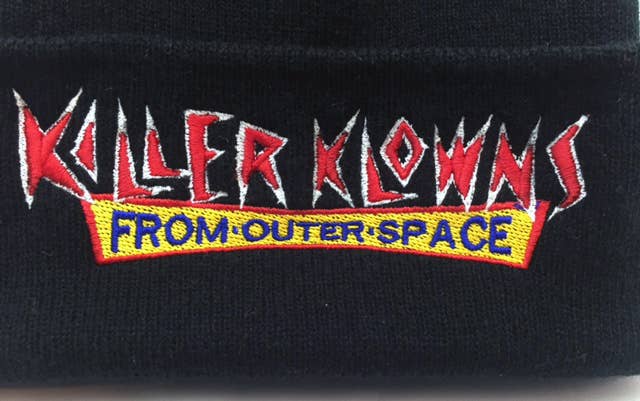 Dive into the creepy world of Killer Klowns From Outer Space with this embroidered designed beanie, boasting the spine-tingling movie logo, perfect for die-hard fans.
