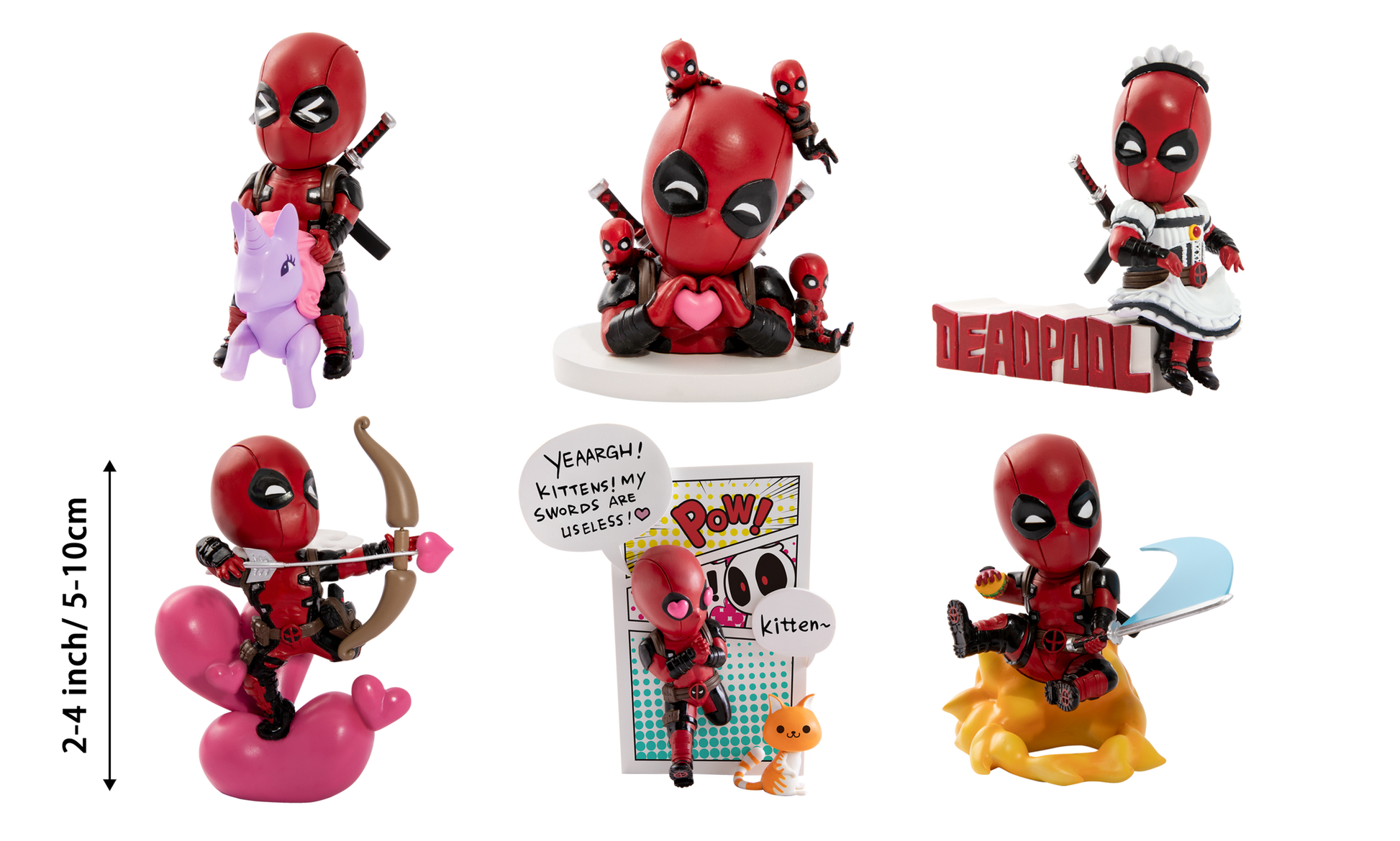 Deadpool and Marvel fans are sure to love these beautiful figurines. This collection is a treasure trove for Deadpool enthusiasts, featuring 3-inch Marvel comics Deadpool character statues that are a testament to meticulous design and attention to detail. Collect All 6!