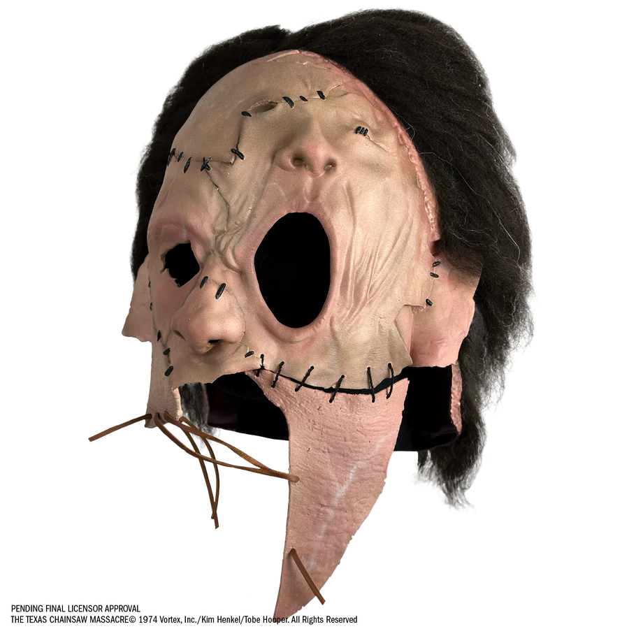 From the new smash hit The Texas Chain Saw Massacre video game from Gun Media™ comes Leatherface's newest look. Designed by horror legend Greg Nicotero (Walking Dead, Creepshow) this new take on Leatherface is sure to become a fan favorite. Developed directly from the game designs, cast in red latex to give extra gruesome realness to this already unsettling mask.