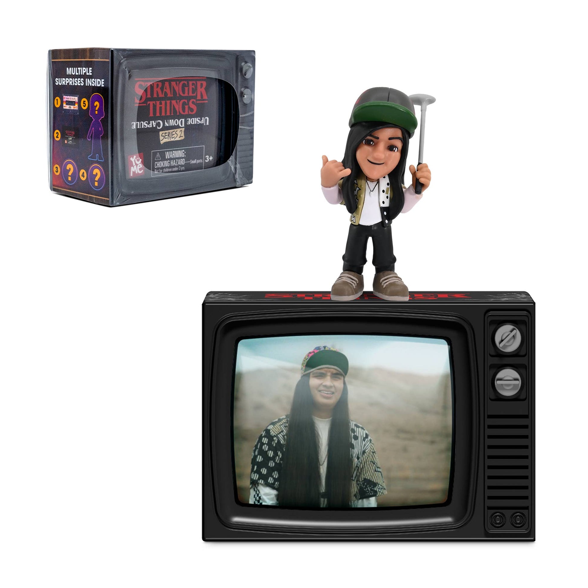 Stranger Things is a critically acclaimed and immensely popular series from Netflix and created by the Duffer Brothers. Continue your collection with YuMe's Stranger Things Upside Down Capsules Series 2, the ultimate thrill for Stranger Things fans and collectors! Get ready for an exhilarating experience as you unveil a world of surprises and mystery with each capsule you open. Unbox the retro TV packaging and unlock a wealth of 80’s nostalgia, clues, games and collectibles! Series 2 introduces fan favorite characters including Will, Vecna, Eddie, Erica, and Chrissy. Collect them All!