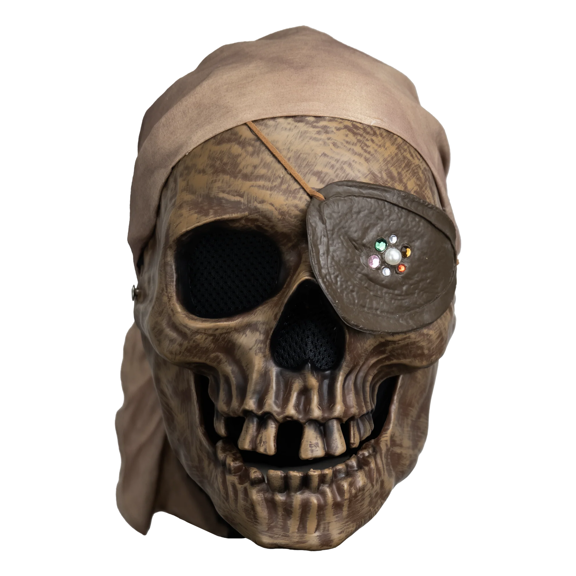 This deluxe injection-molded mask captures One-Eyed Willy’s skeletal features with crisp dimensional detail and film-inspired paint work. The mask includes a fabric bandana permanently attached to the head for added realism, as well as a latex eye patch.