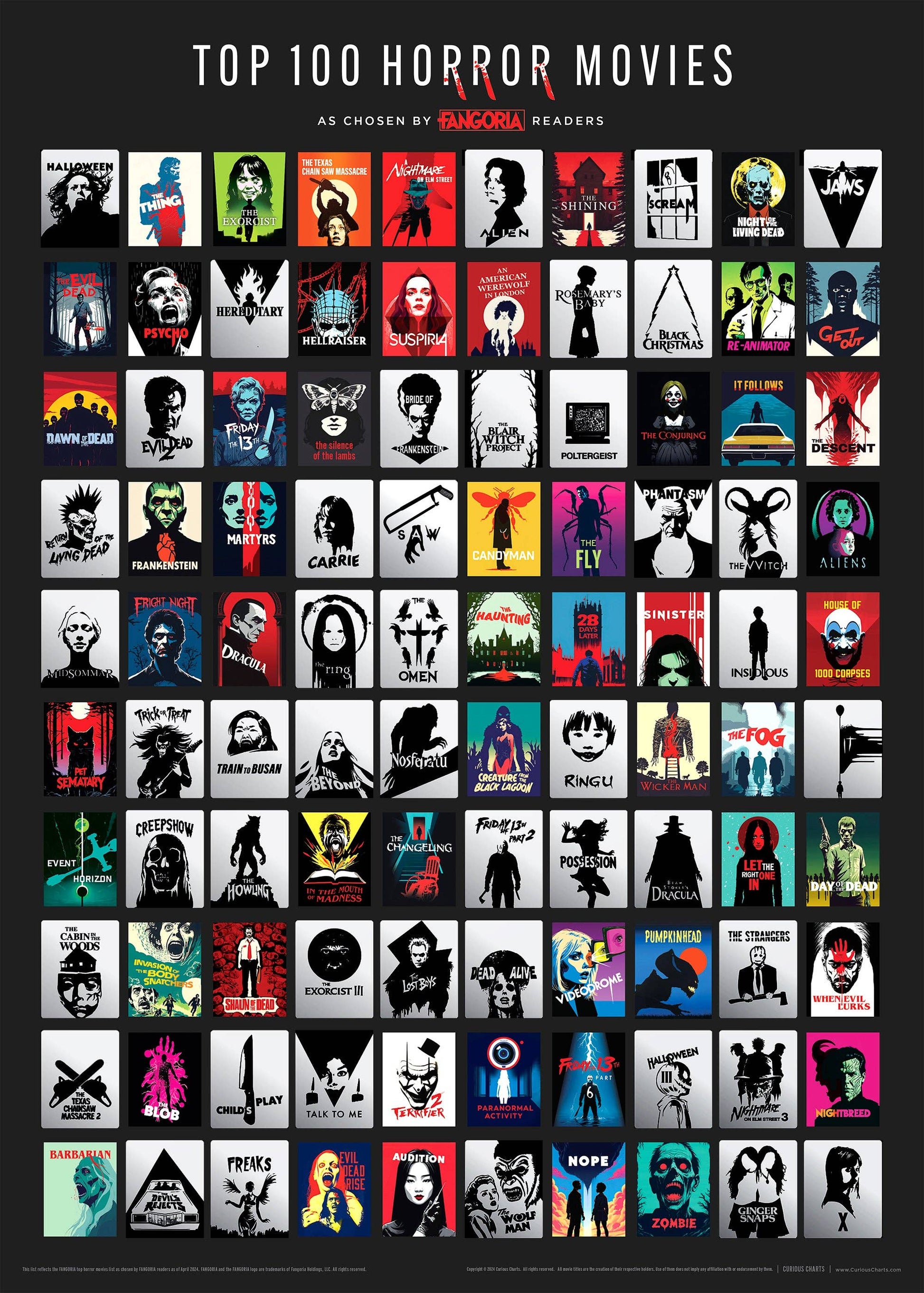 Suffering from movie indecision? This tabulation of terror will solve all your woes! Fangoria is proud to unveil our Top Horror Movies poster, with selections chosen by the preeminent critics of the horror world… YOU!