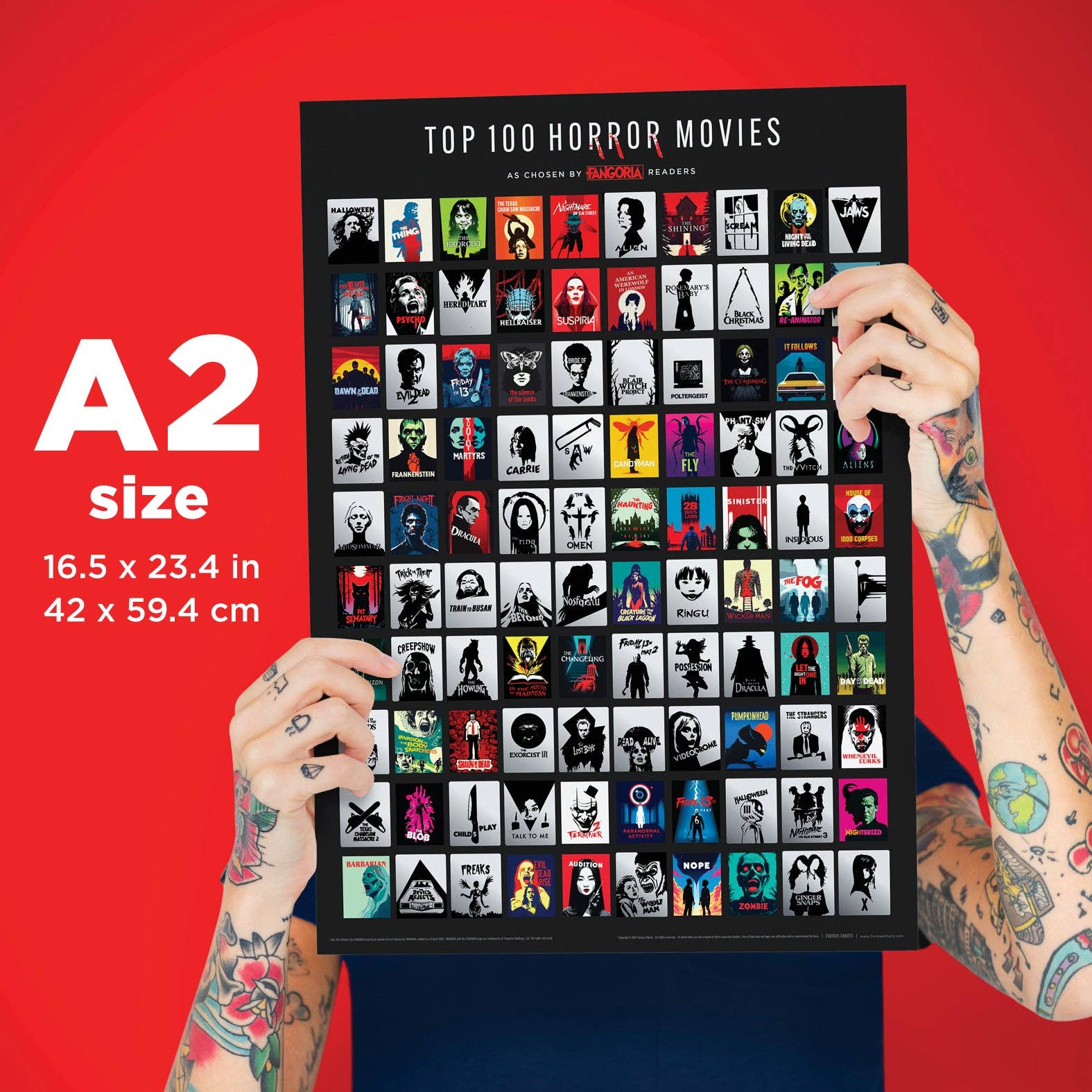 The Fangoria fan community voted on their 100 favorite horror movies, and we’re proud to present them in this limited-edition SCRATCH-OFF POSTER! The perfect gift for horror fans and newbies alike… or the perfect treat for yourself.