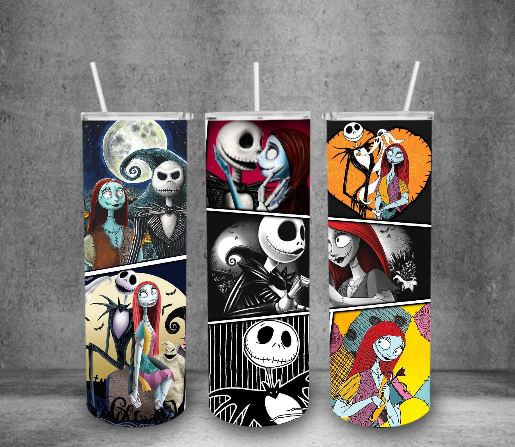 a Nightmare Before Christmas - 20oz tumbler. Each cup comes with a lid and straw; these are stainless steel and insulated. Each design is sublimated directly to the cup.